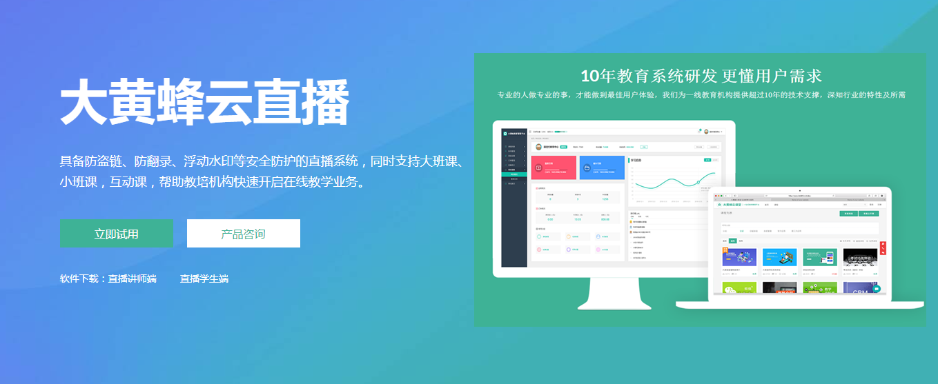 大黄蜂云课堂网校系统基于培训机构、公司内训而设计开发的一套在线教育平台系统。